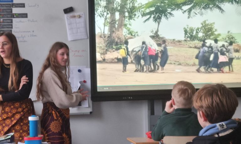 20 januari 2025 , 15:30 uurAfgelopen woensdag kwamen deze twee dames bij ons op school om ons alles te vertellen over hun bezoek aan Malawi, een land in Afrika. Zij zijn een aantal maanden geleden daarheen geweest voor Stichting Timotheos. Hoe ziet een (school)dag er daar uit? En hoe wonen de mensen daar? We hoorden o.a. dat de kinderen erg blij zijn met kleine dingen. Daar kunnen wij nog veel van leren... ;)