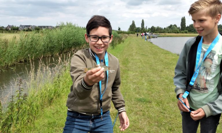 13 juni 2024 , 15:30 uurGroep 8 heeft een visles gehad in de klas. Welke zoetwatervissen kennen we? Waar leven ze? Wat is de grootste? Maar ook: hoe haal ik een haakje uit de bek van een vis? 's Middags zijn we echt wezen vissen. Iedereen kreeg een hengel en we hebben heerlijk langs de waterkant gezeten. Voor sommigen duurde het wat lang (vooral al je niks vangt), voor een ander was het veel te kort. Maar we hebben wel een fijne middag gehad met elkaar. En kijk die trotse gezichten eens als ze een visje vasthouden...