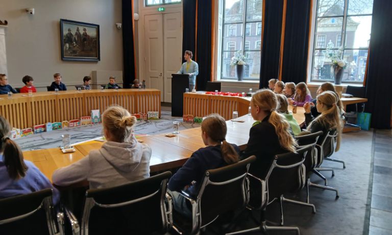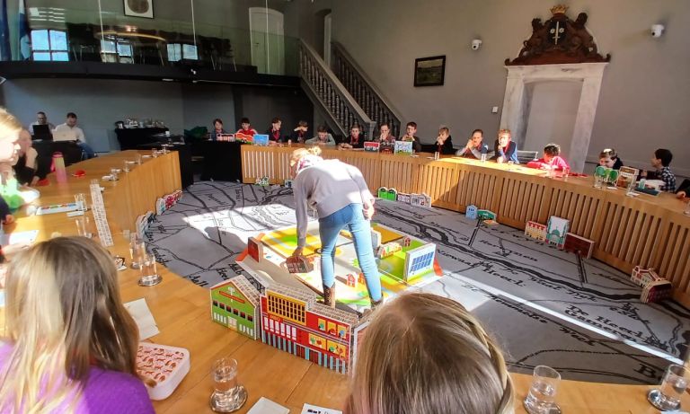 13 maart 2025 , 12:00 uurGroep 8 zat donderdag in een echte raadszaal! Met elkaar hebben we politieke partijen opgericht. Elke partij dacht na over wat ze belangrijk vonden, verzonnen een naam en een slogan. Gebouwen werden uitgezocht om de nu nog lege stad mee te vullen. Daarna was het tijd om te debatteren. Waarom moet dit gebouw écht in de stad komen? Veel gebouwen vulden langzaam de stad. Helaas werd er soms ook weleens een plan weggestemd. Zo werkt dat in een democratie... We hebben in ieder geval veel geleerd!