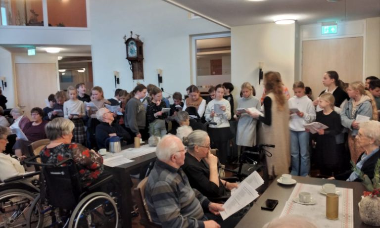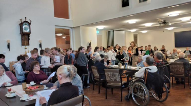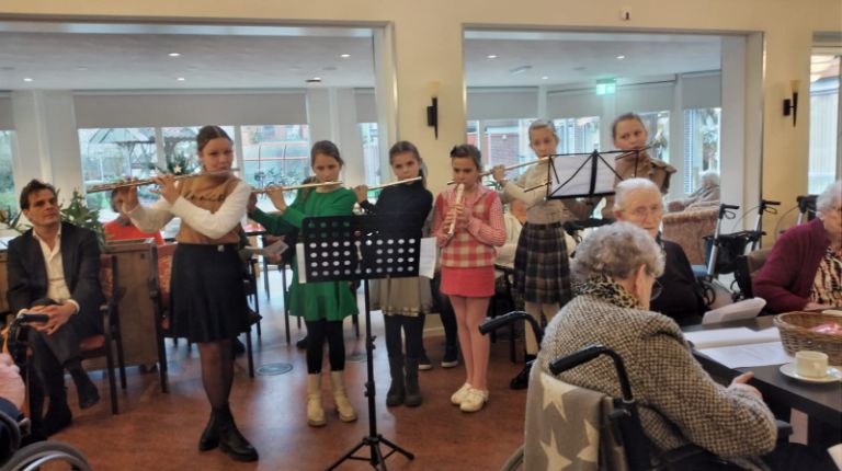 16 december 2024 , 11:00 uurDe leerlingen van de groepen 7 en 8 zijn maandagmorgen bij 't Slot geweest. Hier hebben zij een concert gegeven voor de bewoners. Verschillende kerstliederen en psalmen werden gezongen. Ook mochten de ouderen meezingen. Het klonk echt heel mooi, jong en oud zo samen. We hebben ook geluisterd naar zes leerlingen die 'Stille nacht' op hun muziekinstrumenten hebben gespeeld. Kijkt en luistert u mee?