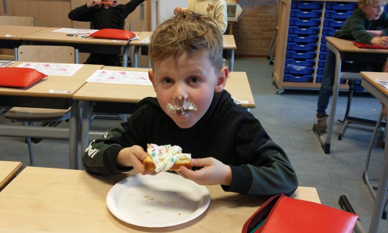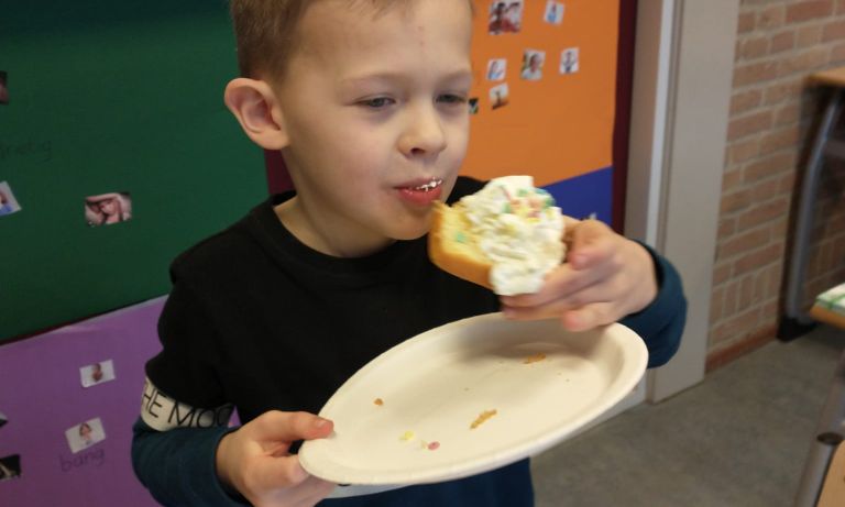21 februari 2024 , 10:00 uurDe donderdag voor de vakantie vierden wij het Letterfeest. Dit deden we omdat we alle letters kennen! Allereerst deden we een letterspeurtocht. Daarna gingen we naar de klas en kleurden we een mooie kleurplaat. Uiteindelijk kregen we nog een lekkere cake met echte letters erop. Dat smaakte heerlijk! De juffen van de groepen 3 zijn trots op deze knappe kinderen.